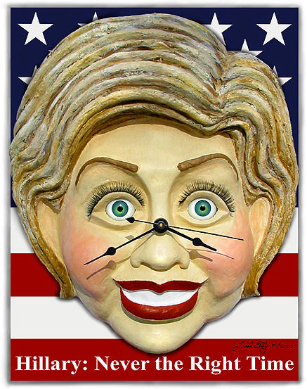 IowaPresidentialWatch is pleased to announce a new line of limited edition*, collectible wall clocks by renown www.IowaPresidentialWatch.com artist Linda Eddy The first clock edition features the life-sized* caricatured likeness of Hillary Clinton and carries the all too meaningful message . . . "Hillary: Never the Right Time"