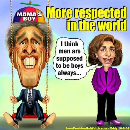 Oct. 8, 2004 John Kerry and wife Teresa Heinz Kerry appeared on the "Dr. Phil Show" where Teresa dropped yet another memorable quote: "I think men are supposed to be boys always. They just go through different stages and if wives understand that they can love them." Yep, that'll go a long ways towards getting more world respect... President Mama's Boy.